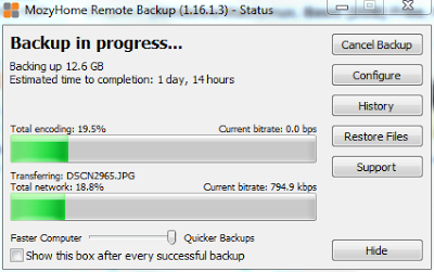 While working in a small computer repair shop I regularly saw cases where people lost every digital picture, document and file they owned. Whether it was due to hard drive failure or a particularly nasty virus, it was very rare to find that they kept an up to date backup of thier files. Realizing how priceless my digital files are I've been doing a weekly back up to an external hard drive for several years. Recently I discovered that the hard drive on which I store the back ups of both my desktop and laptop on, had itself suffered from hardware failure. I decided that I needed a more robust back system. After reading lifehacker's hive five about online backup services I decided to go with Mozy. My decision was mainly based on the fact that Mozy is owned by a large and respected backup company and therefore less likely to disappear after a few months like many internet companies. For home users there are two account types, a free account with 2GB of storage and a paid account with unlimited storage. The Mozy software allows you to be very specific in what you back up, therefore if you are only worried about keeping remote copies of all your word documents this can be easily configured in the options. At first I started using the free account to back up documents but not pictures and music. I quickly forgot that it was running until an important word document I was working on became corrupted. Mozy attaches a virtual hard drive to your computer that when browsed shows all current files as well as files that have been deleted up to 30 days ago. It is also possibe to see all revisions of each file over the past 30 days. Restoring a file is as simple as right clicking and selecting restore. Since then I have upgraded to the unlimited paid account so that I can back up all everything. The obvious disadvantage with an online back up is that your files need to be uploaded over the internet. Despite having a relatively fast connection this still took nearly a week. Mozy does a good job of doing this in the background so that it does not disrupt your computer use. Download Mozy for here |