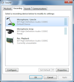 Play sound through the line-in jack on Windows 7
