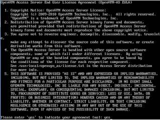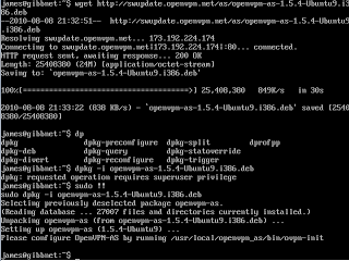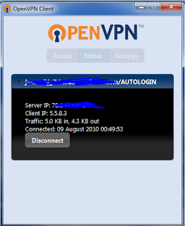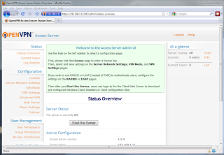 While connected to a public network, such as a free wifi hotspot, it is worryingly easy to intercept other user's web traffic including login details, sites visited and the contents of emails. I will shortly be writing a post describing how to actually perform this attack, but first here is how to protect yourself . The idea behind a virtual private network (VPN) is to securely connect a remote user to a company's network, in order to access to resources and offer the security of browsing the web behind the organisation's firewall. This is of course a a simplistic description, if you are interested wikipedia is a good place to start. By setting up a VPN server at home you can remotely connect to this over the internet, allowing you to encrypt all your web traffic between your current location and your home computer. Note: This does not encrypt the traffic between you and the internet, only between you and your home network, where the data is then sent on like normal. A quick example of where this would be useful is if you were in a coffee shop, where there is free wifi, you can browse safely, even if someone else at the coffee shop is trying to intercept web traffic. Setting up the server There are many ways to set up a VPN server, using both windows and linux. For this tutorial I will use a linux operating system running OpenVPN access server. The first step is to install linux on a computer, almost any distribution will do. For this tutorial I have chosen to use Ubuntu Server 10.04 (32bit) which at the time of writing is the most recent version. If you do not have a spare computer to use as a server you can use a virtual machine, [LINK TO VIRTUAL MACHINE PAGE] Note: Installing Ubuntu using the method described below will wipe the computers hard drive. Please ensure that there is nothing saved on that computer that you wish to keep. There are ways to dual boot with linux and windows, however this is outside the scope of this article. Installing Ubuntu server is pretty straight forward. How to Forge have a great guide but only follow Page 1 and Page 2 as the rest of the tutorial is surplus to requirements for the server we are creating. Once the server is up and running it is time to give it a static IP address. Log in to the account you created during the setup and type: sudo nano /etc/network/interfaces You will be asked for your password and then you will be shown the contents of a text file which will look roughly like this: auto eth0 iface eth0 inet dhcp Change the file so that it is like the example below, remembering to replace the values for address, netmask and gateway with the correct ones for your network. auto eth0 iface eth0 inet static address 192.168.1.11 netmask 255.255.255.0 gateway 192.168.1.1 Save the file by pressing Ctrl-x, then typing y to confirm the changes and finally pressing enter. Next restart the networking by typing: sudo /etc/init.d/networking restart Type ifconfig to check that you now have the IP address that you set. Ubuntu server is now correctly set up so it's time to install OpenVPN access sever. First go to their website and register for an account. This will give you a licence key that allows 2 concurrent users to connect to your VPN server. More user licence can be purchased if required however if it's only you using the server, it's completely free. Once registered download the software to your server by typing: wget http://swupdate.openvpn.net/as/openvpn-as-1.5.4-Ubuntu9.i386.deb (This is the latest version at the time of writing, visit here to check for updates) Next install the software by typing: sudo dpkg -i openvpn-as-1.5.4-Ubuntu9.i386.deb After it finishes it should look look similar to the screen below (Click to enlarge). The next step is to run the configuration program by typing: sudo /usr/local/openvpn_as/bin/ovpn-init Accept the terms and conditions by typing yes and then pressing enter, as shown below. Press enter to set as the primary server. Press enter to select default network interface. Press enter to select the default port of 943. Press enter to select the default tcp port of 443. Press enter to allow client traffic to be sent through the VPN. Press enter to allow private subnets to be accessible. Press enter to use 'root' as the login. Type in the licence key that you got when you registered and press enter. Once you have done this you should see a screen like the one below. This completes the installation, before we can login to the VPN's web interface we need to set up a root password. (This is because in Ubuntu you can't log in to the root account by default.) This is done by typing: sudo passwd root Type in your normal password, hit enter, then type the new root password, hit enter and type it in again. (Make sure it's very secure!) Got to another computer on your network and go to https://YourServer'sIPAddress:943/admin You will probably told by your web browser that the connection is untrusted, or words to that effect. This is because we are using a self signed ssl certificate. It is fine to continue through since we own the server and we know it is safe to connect to. Log in using the root account and you will be presented with the web interface of the VPN server. From here you can configure the VPN server just the way you want it. For this tutorial the only setting that needs changing is the "Hostname or IP Address" setting, which can be found under the "Server Network Settings" section. This should be changed to your external IP address (this can be found by visiting here). If you have a dynamic IP address visit http://www.dyndns.com/ which is a service that provides you with a web address which always points to your correct IP address. Once this is entered go to the bottom of the page and click "Save Settings". Finally go back to the "Status overview" page and click "Start Server". The server should now be fully operational. In order to access the server from outside you home network you will need to forward the cor