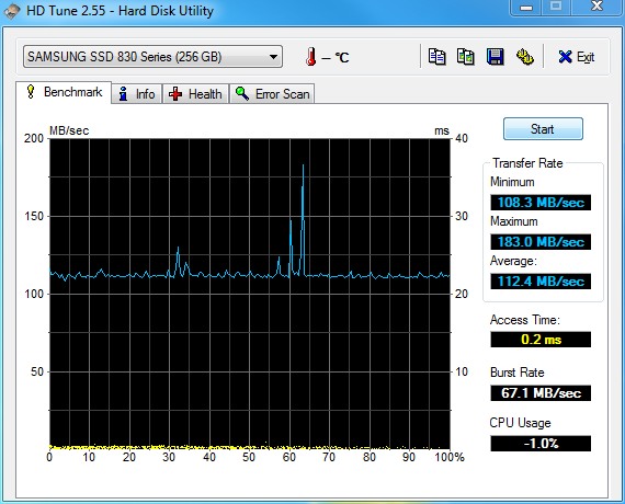 HD Tune was installed and a speed test was run. The results are shown below: